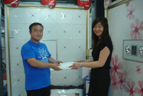 河南郑州店老板娘和中奖顾客陈凯合影