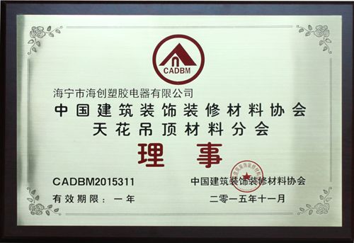 11月,中国建筑装饰装修材料协会天花吊顶材料分会正式授予海宁市MK手机网页版登录入口塑胶电器有限公司天花吊顶材料分会理事单位殊荣。