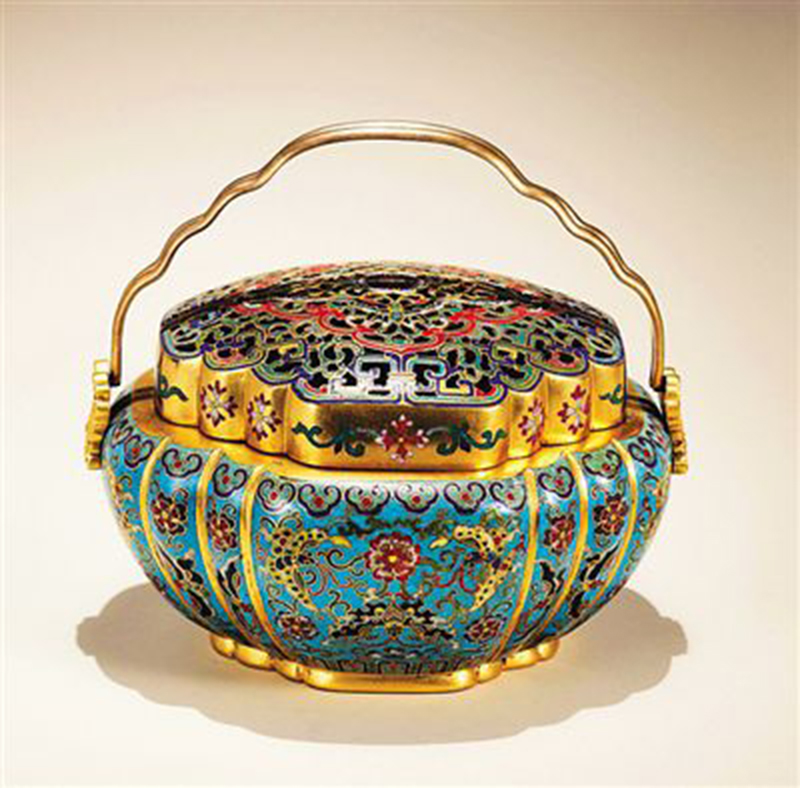 手炉——熏炉小一点即为手炉,也叫“捧炉”“袖炉”,不过大部分手炉有提梁(提柄)。古人宽袍大袖,可将手炉放在袖里暖手,随身携带,温暖方便。