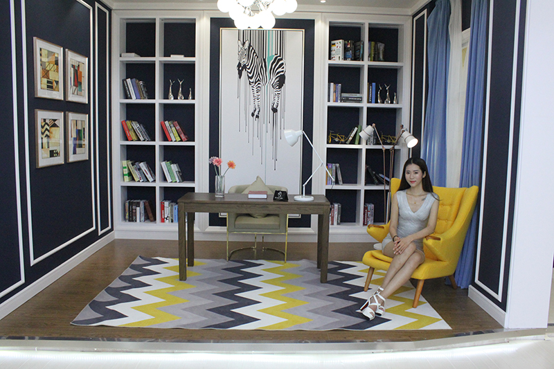 展馆入门即现的大面积现代客厅展示精美绝伦,led大灯与回光灯交相呼应,恍惚间,让人感觉仿佛身处一个家族聚会的中心。客厅顶的搭配巧妙无比,在考虑板材与电器的融洽性的同时,引入柞木碳材质,有效能吸附甲醛甲苯等有害气体,美观与健康兼具。