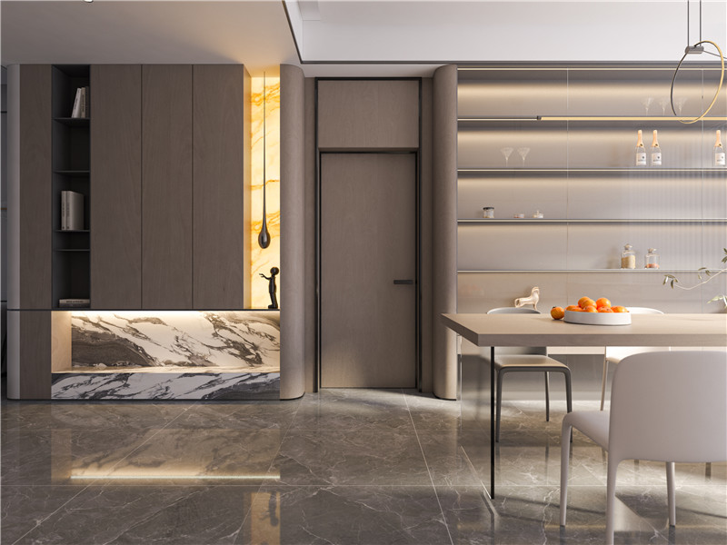 新中客餐玄关背景|顶墙柜一体 雅致天成……