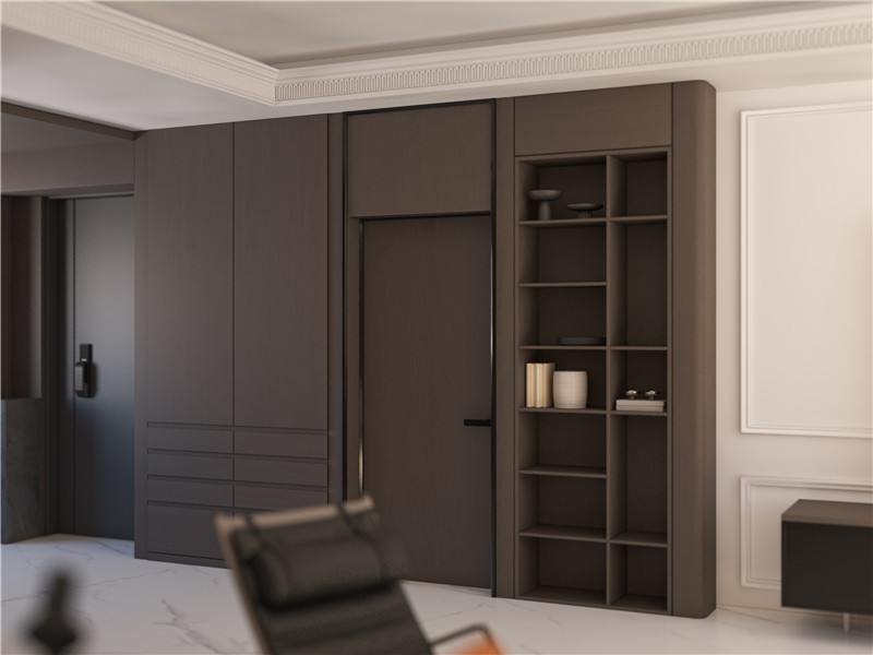 相比于隐形门统一的视觉美来说,利落的极窄门框线条则是另一种美,门框颜色略微突出,体现了门的位置,但不会突兀到让人无所适从。