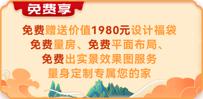 2、免费享:免费赠送价值1980元设计福袋,免费量房、免费平面布局、免费出实景效果图服务,量身定制专属您的家