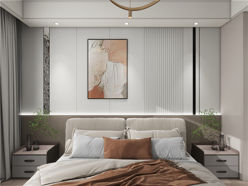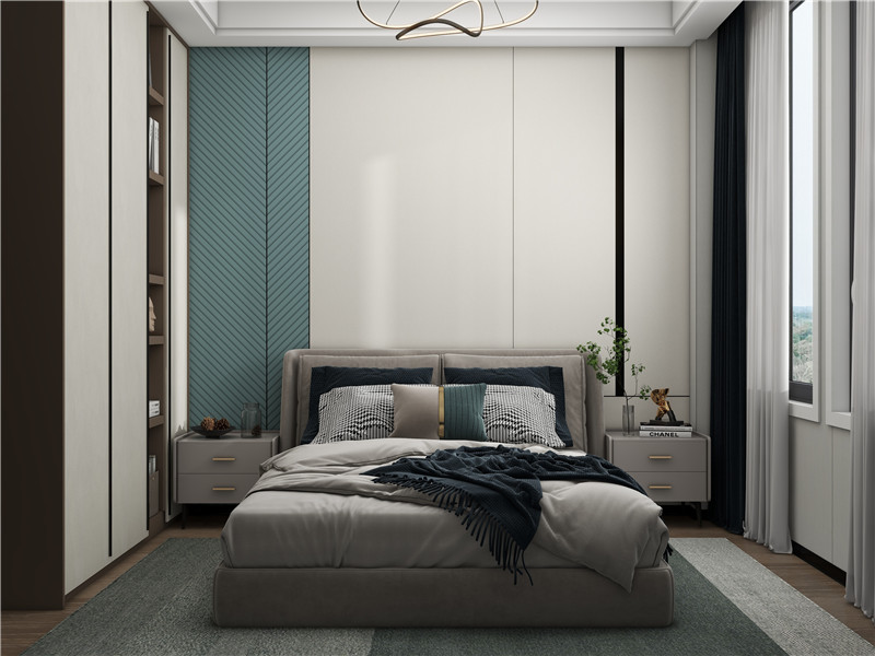 卧室空间比较宽敞,一定要设计大面积的定制柜,一门到顶,既与墙板统一,又能增加收纳量。如果还有飘窗,则用竹木美墙板改造成带有定制柜的休闲场所,也是一个不错的选择。