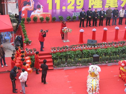 中国舞狮大赛冠军队成龙舞狮队前来助兴,领导进行点睛仪式